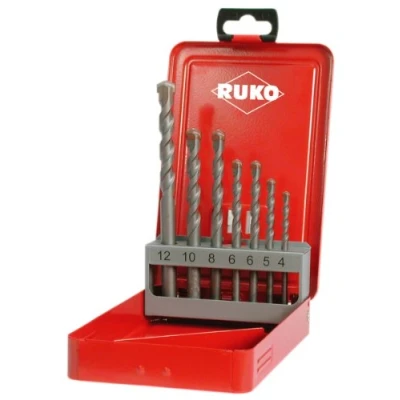 Ruko Percussion Drill Bit Set with Carbide Cutting Edge and Straight Shank In Steel Case, Bright Finish, 7 Pieces, R205256
