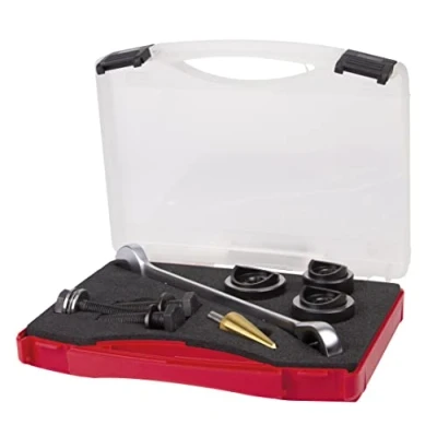 Ruko Special Steel Screw Hole Punch Set Duo Cut SGS Power with Two Point Cutting Tip for Plumbing in Plastic Case, Black Finish, 8 Pieces, R109010