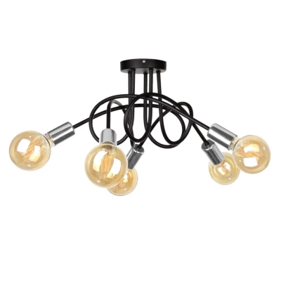 Rumba Multi Arm Semi Flush Ceiling Light Black, Silver, 50cm, 5x E27