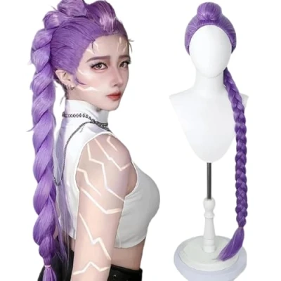 Rumi Purple Fiber: Crafted from synthetic fiber materials,this purple cosplay wig is exceptionally soft and comfortable to wear. Its skin-friendly texture ensures long-lasting comfort without irritation, making it ideal for extended use at events Character-Inspired Color: The long purple wig showcases a purple hue, as displayed in the product images. Please note that slight variations in color may occur due to manufacturing differences or individual monitor settings—yet it remains a striking and authentic-looking choice for bringing anime characters to life Steady all-in-one Braids: This set includes one purple pre-styled rumi wig with integrated braids . Unlike wigs with detachable braids that rely on weak plastic clips, our design features braids that are permanently and securely attached—so they won’t slip or loosen during wear. Everything you need for an effortless and flawless transformation comes in the package Breathable Cap Design:Designed with a soft, breathable inner cap, this long purple wig can be easily customized to fit various head sizes comfortably. Unlike other wigs that are often too short, our Rumii wigs feature an extra-long length(40" 100cm) for a more authentic and striking appearance, ensuring your cosplay stands out For Vivid Cosplay & More:Whether it’s for Halloween, anime conventions, themed parties, performances, or even fun social events like weddings or dates, this purple braided wig adds a bold and playful touch to any occasion. It’s also a gift for anime enthusiasts and cosplayers of all ages