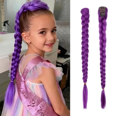 Rumi Hair, 26 Inch Long Purple Braid Ponytail Extensions Pre Stretched Hair for Braids Easy Clip in Cosplay Halloween Costume (Purple Clip)