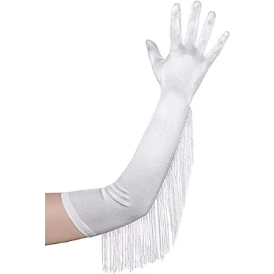 The prom party pageant dance gloves measures approximately 19.7" long. Length of fringe: 9.5"; One size fits most because of the high quality a bit stretchy satin fabric. A pair of classic opera gloves, fits roaring 20s the Great Gatsby theme, in vintage style, very smooth and comfortable. Great dance gloves with elegant fringe which moves beautifully during walking or dancing. Can be used in wedding, engagement, the Great Gatsby themed party, flapper costume party, St Patrick's Day, prom, dance, ball, evening party and other special occasions. Wash in cold water, no bleach, hang to dry.