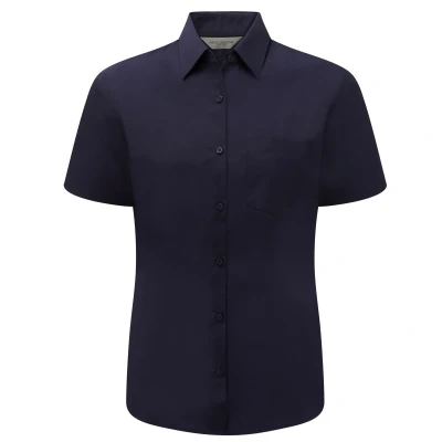 Russell Athletic Collection Ladies/Womens Short Sleeve Poly Cotton Easy Care Poplin Shirt (French Navy) Multicolour Size Medium