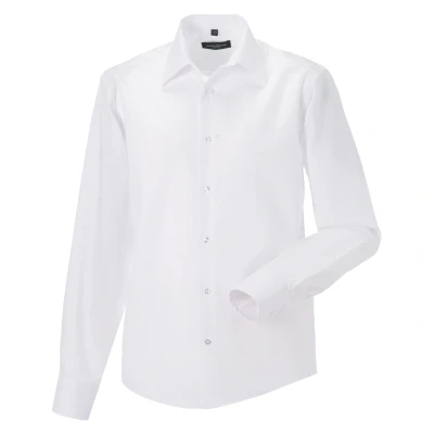 Our most premium shirt, offering a luxurious fabric and elegant contemporary design. Made from a new type of non-iron fabric that stays wrinkle free and keeps the wearer looking smart all day long. Contemporary, tailored cut with modern stiffened, semi-cutaway boned collar. Mitred cuff, adjustable with two buttons and with option for cuff links. Without chest pocket. Rounded hem. The fine micro twill fabric is a great basis for a wide variety of decoration methods and especially suitable for outstanding embroidery. The non-iron fabric doesnt decorate differently than comparable standard fabrics. Weight: 120g/m². Fabric: 100% Cotton Micro Twill. Size: Neck (ins) 14.5, chest (ins) 36-38. Neck (ins) 15, chest (ins) 36-38. Neck (ins) 15.5, chest (ins) 38-40. Neck (ins) 16, chest (ins) 40-42. Neck (ins) 16.5, chest (ins) 40-42. Neck (ins) 17, chest (ins) 42-44. Neck (ins) 17.5, chest (ins) 42-44. Neck (ins) 18, chest (ins) 44-46. Neck (ins) 18.5, chest (ins) 46-48. Neck (ins) 19, chest (ins) 46-48. Neck (ins) 19.5, chest (ins) 48-50. RUSSELL COLLECTION - a variety of Mens and Womens corporatewear in a wide range of styles, colours and sizes.