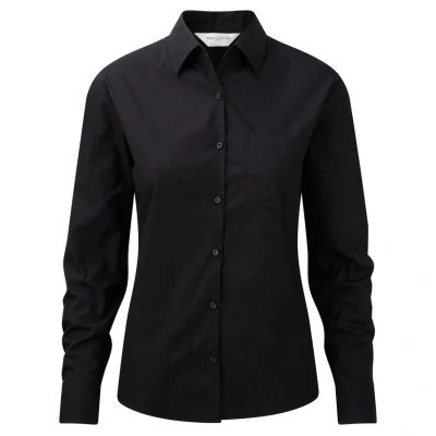 Russell Athletic Collection Womens/Ladies Cotton Poplin Easy Care Long Sleeved Formal Shirt (Black) Size Medium
