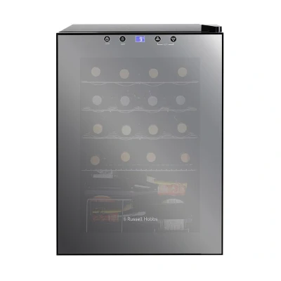 AmazonRussell Hobbs 20 Bottle 62L Mirrored Door Wine Cooler Freestanding Beverage Drinks Fridge, LED Light with Touch Control, Digital Display, Adjustable Shelves, Glass Door RH20WC201MR