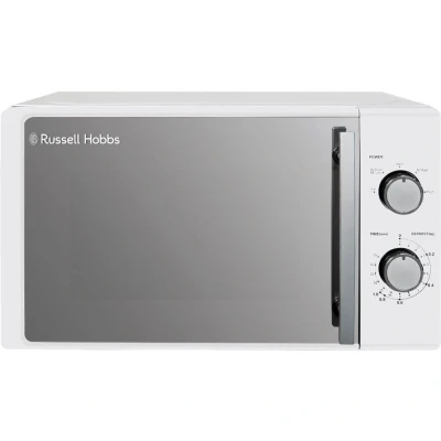 CurrysGood to know- This Russell Hobbs microwave's got 5 power levels, so you can easily find the right level to heat your meal- It comes with simple dial controls and a 35-minute timer for easy everyday use- Reheating frozen leftovers is super easy with the defrost function- Cleaning up spots and splatters is hassle-free - the glass turntable is dishwasher safe- This microwave is nice and compact which is great for smaller kitchens