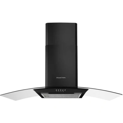 Russell Hobbs 90cm Curved Glass Cooker Hood in Black with 3 Speed Settings, 2x Carbon Filters, Extraction or Recirculation, 540m3/h Rate, LED Lights, A+ Energy Rating, RH90GCH92A1B