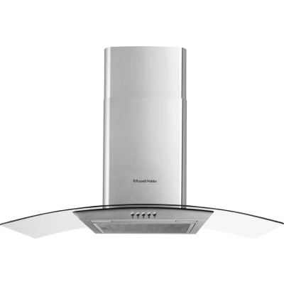 Russell Hobbs 90cm Curved Glass Cooker Hood in Stainless Steel with 3 Speed Settings, 2x Carbon Filters, Extraction or Recirculation, 540m3/h Rate, A+ Energy Rating, RH90GCH92A1SS