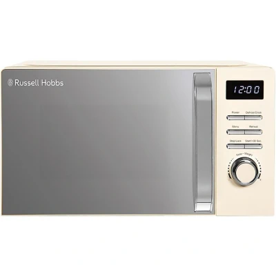 Russell Hobbs Digital Microwave 20L 800W in Cream with 5 Power Levels, Pull Handle Door & Button Control, Clock Timer, Automatic Defrost, Easy Clean, 8 Auto Cook Menus RHMD818C