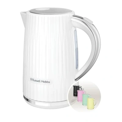 Russell Hobbs Electric Kettle (Hot Water, Tea or Coffee, 1.7L, Push to open lid, Perfect pour spout, Removable washable filter, Illuminated switch, Chrome accents, White, 3000W) Eden 27360