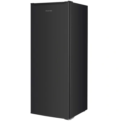 The Russell Hobbs RH143LF552E1B Black Larder Fridge offers 242L capacity, 5 glass shelves, a salad crisper, and 4 door racks, perfect for storing up to 13 bags of groceries. It features an adjustable thermostat, reversible door, adjustable feet, and comes with a 2-year guarantee.