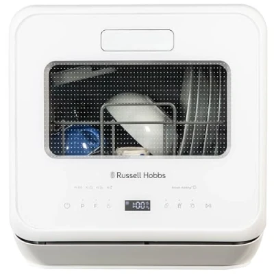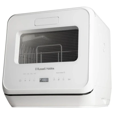 Russell Hobbs Mini Dishwasher Compact Table Top in White 2 Place Setting Dishwasher, LED Touch Control, 4 Programmes, Portable & Efficient, Baby Care, Fruit Wash Eco Mode, No Plumbing, RH2TTDW0D1W