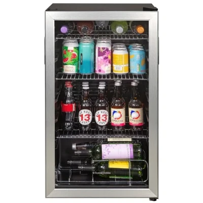 CurrysGood to know- Wine, beer or soda - store your favourite drinks in this 93 litre Russell Hobbs cooler- Love your beer extra chilled? Turn down the temperature to as low as 2°C with its adjustable thermostat- Adjusting the shelves to wiggle in your tall bottles of Chardonnay is a walk in the park- See what's inside and grab your chosen tipple without much fuss thanks to its clear glass door___________________________________________________________________________PLEASE NOTE:Use in outbuildings: This refrigerator is not designed to be used in an outbuilding - both your food and the appliance can be damaged. Do not use it in any unheated area.Door hinged on right: Door reversal is not available on this product - please don't select door reversal service when adding this product to your basket.