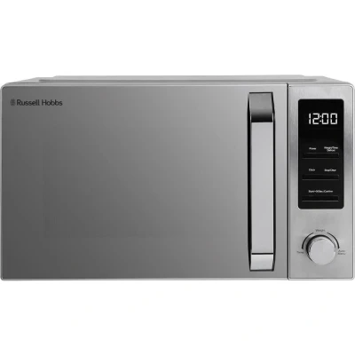 Currys- This Russell Hobbs microwave has 900 W of power so you can rustle up your favourite meal in no time- With a large 23-litre capacity, you can cook pot pies and stews for your whole family - The digital display and dial control let you easily tweak settings on the fly - Whip up anything, from delicious roast chicken to crunchy vegetables, with its 8 auto-cook programs - Use the defrost function to thaw those chicken wings straight out of the freezer - Your tiny tot won't accidentally switch it on, thanks to the child lock feature