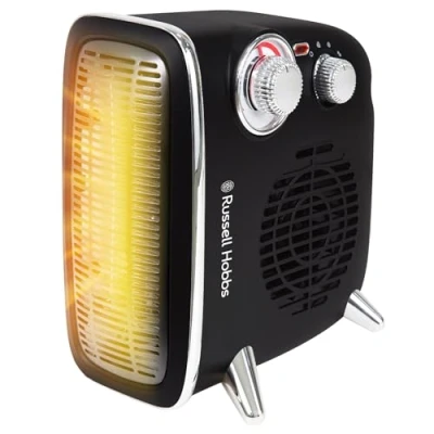 RETRO STYLING – Stylish retro curves, black body and silver trim 1.8kW MAXIMUM HEAT OUTPUT – Choose from 2 Heat Settings (900/1800W) 20M2 ROOM SIZE – Perfect for heating spaces such as living rooms and bedrooms VERSATILE HEATING – This adaptable fan heater can be used horizontally or vertically to suit any setting 2 YEAR GUARANTEE - This product comes with a free one year manufacturer guarantee. A free second year guarantee is available upon registering your product DIMENTIONS - (H)25.5 x (W)25 x (D)14.2CM WEIGHT - 1.2KG, Weight: 2.645547144 Pounds, Manufacturer: Russell Hobbs