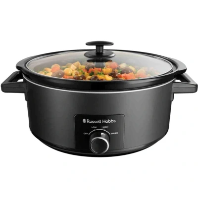 Russell Hobbs Slow Cooker [7L, 320W] (Cooks 8 Portions, Stainless Steel, Removable Ceramic Pot, 3 Temperature settings, Dishwasher Safe, Cool Touch Handles,) Matte Black 27720