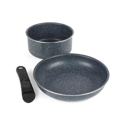 Russell Hobbs Smart Clip 2 Piece Pan Set Xylan Plus Non Stick Coating, Nightfall Stone Starter Set, 24 cm Frying & 18 Saucepan, Removable On Handle, Stackable Design, PFOA Free