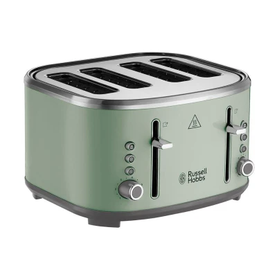Russell Hobbs Toaster 4 Slice (Independent & Extra wide slots, 6 Browning levels, Frozen, cancel reheat features with blue indicator light, removable crumb tray, Sage) Stylevia 26294