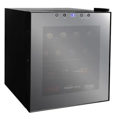 Russell Hobbs Wine Cooler 46 Litre 12 Bottle Undercounter Freestanding Beverage Holder for Beer, Stainless Steel, LED Light, Drinks & Snacks Mirrored Glass Door, RH15WC201MR