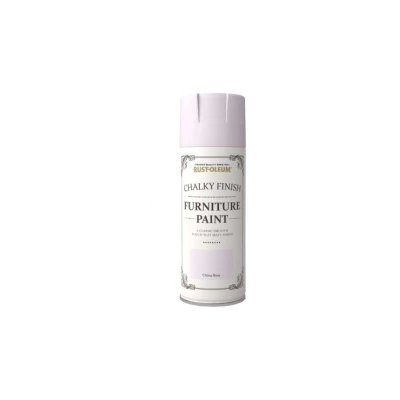 General description With Rust-Oleum Chalky Finish Furniture Paint in China Rose, you can easily transform tired furniture with a smooth, flat matt finish. This 400ml aerosol spray allows for quick application, making it simple to breathe new life into worn-out pieces. Choose from 8 exclusive shades to customize your furniture, and enhance durability with Rust-Oleum Furniture Finishing Wax or Lacquer. Technical specifications Pack size: 400ml Finish: Smooth, chalky matt Coverage: Exceptional in one coat Compatibility and accessories Can be used on wood (bare or painted), brick, stone, plaster, or any suitably primed rigid surface Recommended to finish with Rust-Oleum Furniture Finishing Wax or Lacquer for added protection Usage Apply directly onto the surface to be painted For a distressed look, apply two coats in contrasting colors and sand when dry