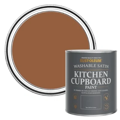 Giving your kitchen a refresh has never been easier with Rust-Oleum Kitchen Cupboard Paint, easily applied to melamine, wood and laminate cupboards Available in a Satin finish to add a touch of glamour, choose from 150 stunning colours to complement any kitchen colour scheme No primer or topcoat needed, this paint is hard-wearing, scrubbable and has increased durability against everyday spills and stains The highly pigmented formula is easy to apply by brush or roller for lasting coverage that goes a long way, even on varnished or painted surfaces Upcycle your kitchen cabinets at less cost to you and the environment with a paint that’s made in the UK, water based and available in a 750ml infinitely recyclable tin, Weight: 2.3809924296 Pounds, Manufacturer: Rust-Oleum