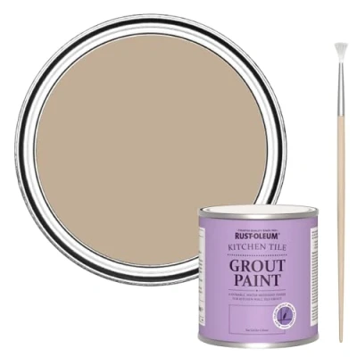 Restore and transform stained tile grout with Rust-Oleum Kitchen Tile Grout Paint. Perfect for use on kitchen splashbacks and tiled walls Easy to apply with the Rust-Oleum Grout Paint Brush included, touching up tile grout has never been easier. No more unreliable, ineffective grout pens, simply use directly onto grout without the need for a primer and complete your project in a day, as the Grout Paint is touch dry in 1 hour and hard dry in 4 hours The specialist grout paint is ultra-durable and stain-resistant, perfect for standing up to kitchen grease and everyday food splashes. Available in over 140 colours and metallic Copper and Rose Gold finishes The innovative, mould-resistant formula provides a durable satin finish that is water-resistant within 24 hours, so you can revive and protect grout from future discolouration Rust-Oleum Kitchen Tile Grout Paint is made in the UK and comes in eco-friendly packaging and an infinitely recyclable, 250ml tin, Manufacturer: Rust-Oleum