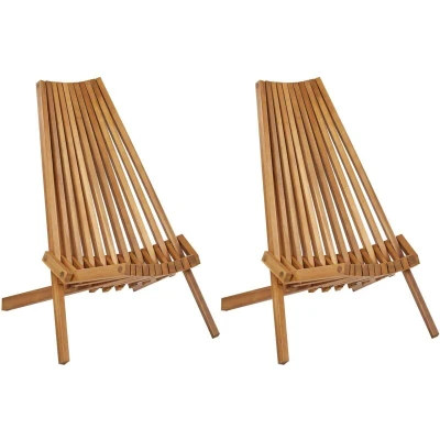 Rustic Modern Light Acacia Wood Outdoor Set of 2 Garden Bistro Chairs Foldable Bellano