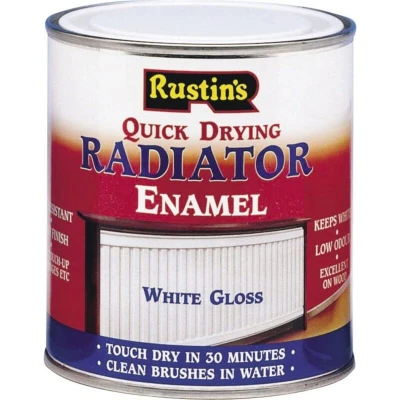 General description This Rustins Quick Dry Radiator Enamel Paint in Gloss White is perfect for touching up white appliances. The specially formulated enamel maintains its white color and resists yellowing over time, providing a durable, glossy finish that is heat resistant and low odour. The paint is quick-drying, becoming touch dry in just 30 minutes, making it convenient for quick touch-ups and maintenance. Technical specifications Colour: White Finish: Gloss Size: 500ml Type: Radiator enamel paint Manufacturer's part number: RADG500 EAN: 5015332700226 Compatibility and accessories Suitable for radiators and appliances requiring a white enamel finish Not suitable for use on oil-filled electric radiators Installation Ensure the surface is clean, dry, and free from grease or dust before application Apply with a brush or spray for an even coat Allow to dry for at least 30 minutes between coats if multiple coats are needed Usage Use for touching up or repainting radiators and white