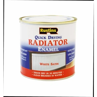 ManoManoGeneral description This Rustins Quick Dry Radiator Enamel Paint in Satin White is perfect for touching up white appliances. It is specially formulated to remain white and resist yellowing over time, ensuring a long-lasting finish. Technical specifications Colour: White Finish: Satin Size: 250ml Touch dry in: 30 minutes Heat resistant Low odour Compatibility and accessories Not suitable for oil-filled electric radiators Other information