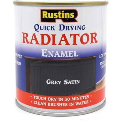 ManoManoGeneral description Rustins Quick Dry Radiator Enamel Paint is a heat-resistant, low-odour, water-based paint that dries quickly, becoming touch dry in just 30 minutes. It is perfect for use on radiators and can also be used for touching up fridges and white appliances. This paint is available in both gloss and satin finishes. Technical specifications Type: Water-based Drying time: Touch dry in 30 minutes Finishes available: Gloss and satin Heat resistant Low odour Usage Ideal for radiators and white appliances Clean brushes with water Not suitable for oil-filled electric radiators