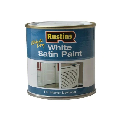 General description Rustins Quick Dry White Satin Paint is a high-quality, hard-wearing, water-based alkyd paint suitable for both interior and exterior applications. It provides a durable satin finish that enhances and protects surfaces, making it ideal for use on bare wood, hardboard, MDF, plaster, brickwork, and cement. The paint is quick-drying, touch dry within approximately 30 minutes, and has a low odour, ensuring a comfortable application experience. Technical specifications Color: White Finish: Satin Size: 250ml Type: Water-based alkyd paint Drying time: Touch dry in approximately 30 minutes Compatibility and accessories Suitable for interior and exterior surfaces including wood, plaster, brick, and cement Can be applied with brushes or rollers Installation Ensure surfaces are clean, dry, and free from dust or grease before painting Apply with a suitable brush or roller in even coats Allow sufficient drying time between coats as per instructions Usage Use for painting walls,