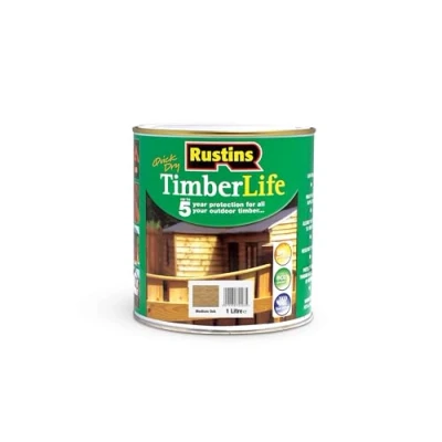 Timberlife Medium Oak 1ltr Rustins Timberlife Wood Preserver - Protective and Decorative Wood Treatment, Various Colours, Sizes 1L and 5L, For Long-Lasting Exterior Wood Protection Superior Protection: Rustins Timberlife Wood Preserver provides exceptional protection against wood decay, rot, and insect attack, ensuring the longevity of your exterior wood surfaces Versatile Colour Options: Available in various colours, Rustins Timberlife allows you to enhance the natural beauty of your wood while adding a decorative finish that complements your outdoor aesthetics Convenient Sizes: Choose between 1L and 5L sizes to suit your project needs, whether it's a small DIY task or a larger-scale wood preservation job. ADD TO BASKET now, Weight: 2.49563280584 pounds, Manufacturer: Rustins