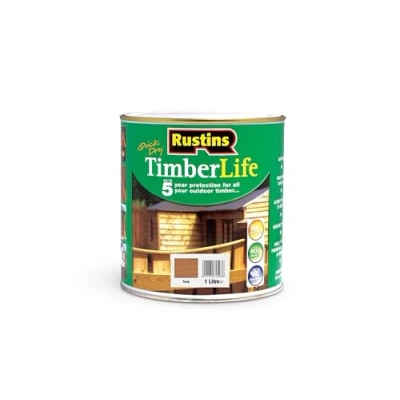 Timberlife Teak 1ltr Rustins Timberlife Wood Preserver - Protective and Decorative Wood Treatment, Various Colours, Sizes 1L and 5L, For Long-Lasting Exterior Wood Protection Superior Protection: Rustins Timberlife Wood Preserver provides exceptional protection against wood decay, rot, and insect attack, ensuring the longevity of your exterior wood surfaces Versatile Colour Options: Available in various colours, Rustins Timberlife allows you to enhance the natural beauty of your wood while adding a decorative finish that complements your outdoor aesthetics Convenient Sizes: Choose between 1L and 5L sizes to suit your project needs, whether it's a small DIY task or a larger-scale wood preservation job. ADD TO BASKET now, Weight: 2.425084882 Pounds, Manufacturer: Rustins