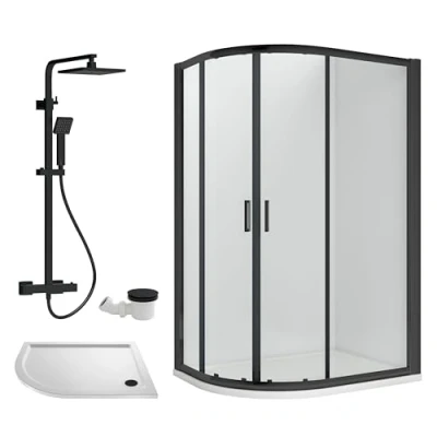 ManoManoGeneral description Upgrade your shower with Balterley’s offset quadrant bundle. Featuring a matt black frame, slimline tray, round kit, and a lifetime guarantee, it blends bold style, safety, and long-term durability. The Ruwa 1000 x 800 mm offset right-hand quadrant includes 6 mm toughened glass, a smooth-glide sliding door, and Easyfit installation. Designed for compact layouts, it maximizes space while delivering a modern upgrade built for everyday use. Technical specifications Complete Set: 1000 x 800 mm offset right-hand quadrant with sliding door, slimline white resin tray, round shower kit, and waste Enclosure Dimensions: H: 1850 mm x W: 1180 mm x D: 780 mm Tray Dimensions: H: 40 mm x W: 800 mm x L: 1200 mm Shower Dimensions: H: 1200 mm x W: 200 mm x D: 465 mm Glass Thickness: 6 mm toughened glass Other information Lifetime Guarantee: Backed by Balterley’s trusted quality for a safe, stylish, and durable investment