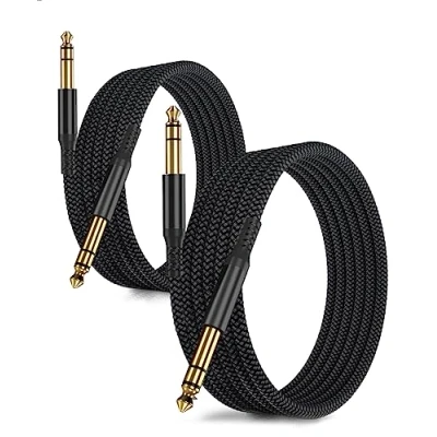 RUXELY 6.35mm TRS Instrument Cable 3M 2 Pack,Straight 1/4 Inch Male Jack Stereo Audio Interconnect Cord,6.35 Balanced Lead Line for Electric Guitar,Bass,Keyboard,Mixer,Amplifier,Amp,Speaker,Equalizer