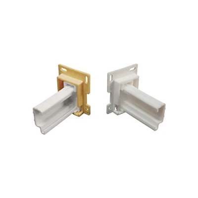 Includes left and right sockets 4-way adjustable base Sockets mount at back of cabinet to support side-mounted drawer slides Mounting screws included "?" shaped 2-1/8" x 1-3/4" with a 2-1/2" socket