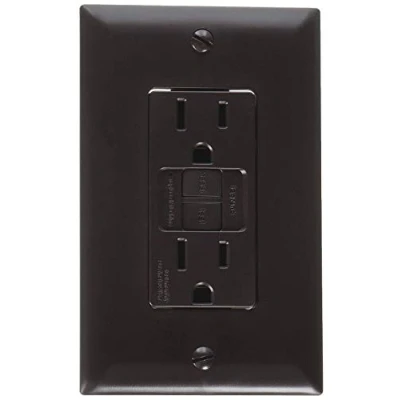 RV Designer S805, Dual GFCI Outlet with Cover Plate, Brown, AC Electrical