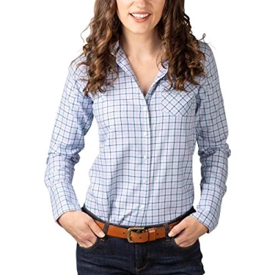 Rydale Hannah II Country Check Shirt Ladies Checked Pattern Soft Cotton Women's Blouse Top (8, Ellie JBlue)
