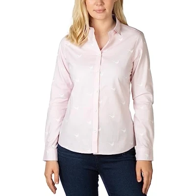 Rydale Ladies Oxford Cotton Printed Shirt Womens Button Shirts Blouse Animal Print (as8, Numeric, Numeric_12, Regular, Pink Pheasant)