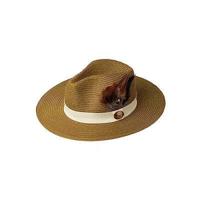 Rydale Ladies Panama Hat with Feather Womens Summer Fedora Hats Trilby Headwear (as8, Alpha, s, Olive)
