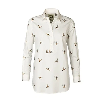 100% COTTON– crafted from a super-soft 100% cotton fabric COUNTRY ANIMAL PRINTS – a variety of country-inspired animal prints including pheasants, dog, deer’s, ducks and hares BUTTON-DOWN – a stylish quarter button down fastening EQUESTRIAN INSPIRED – classic equestrian style OVERHEAD STYLE – in an easy overhead style with flattering curved hem TRADITIONAL COLLAR – a traditional style collar with a five-button placket