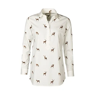Rydale Ladies Printed Overhead Shirt Women’s Button Shirts Blouse Animal Print White Tops Tunic (as8, Numeric, Numeric_18, Regular, Deer)