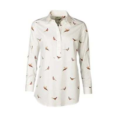 Rydale Ladies Printed Overhead Shirt Women’s Button Shirts Blouse Animal Print White Tops Tunic (as8, Numeric, Numeric_22, Regular, Pheasant White)