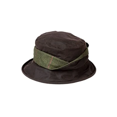 Crafted from durable waxed cotton fabric for ultimate durability Offering great protection for your head Twisted band design with tweed printed fabric Available in three attractive colours – Navy, Brown or Olive Elasticated inner band to ensure a great fit One-size-fits-all Wide brim for added protection Water Resistant Stylish and comfortable quilted inner lining