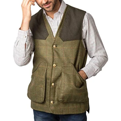 Rydale Men's Danby Tweed Shooting Waistcoat Outdoor Country 100% Wool Gents Gilet Bodywarmer