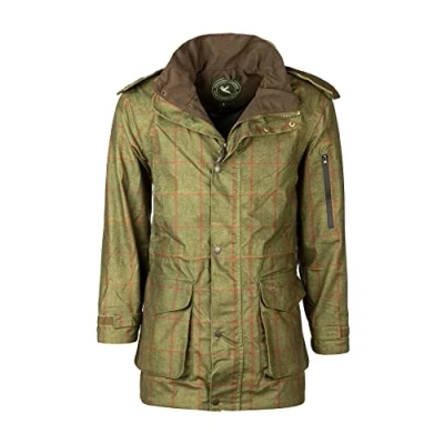 WATERPROOF & BREATHABLE - to ensure you remain warm and dry with a breathable mesh-lining to help air circulation PERFECT FOR HUNTING - with two earthy check tweed printed patterns so make sure you stay camouflaged out in the field LARGE FOLDAWAY HOOD - ready for when you need a little added protection from the elements RUSTLE-FREE FABRIC - to help you remain quiet whilst out in the field MULTIPLE CONVENIENT POCKETS - including hand-warmer chest, two lower pockets and an inside pocket TWO WAY ZIP - a fantastic way to customise the fit and length of your jacket MESH LINED - creating excellent ventilation, making it perfect for hunting
