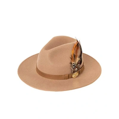 Rydale Unisex Fedora Mens & Womens Wool Felt Hat with Suede Band and Feather Decoration (Beige, Medium)