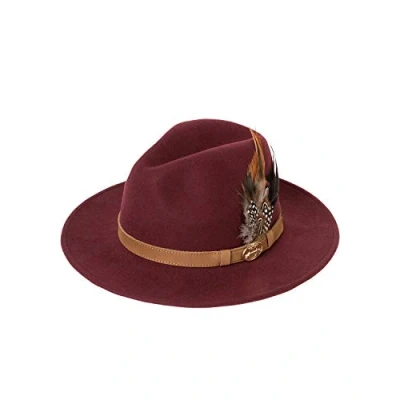 Rydale Unisex Fedora Mens & Womens Wool Felt Hat with Suede Band and Feather Decoration (Burgandy, Medium)