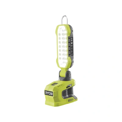General description This super versatile Ryobi R18ALP-0 18V ONE+ Cordless LED Project Light is perfect for illuminating any workspace, whether you're dealing with a power cut, working under a car, or enjoying a camping trip. Its design allows for easy maneuverability, enabling it to stand, fold, or hang, so you can use both hands for your tasks in a well-lit environment. Technical specifications Light source: 18 high power LEDs Brightness: Up to 900 lumens Effective distance: Up to 6 metres